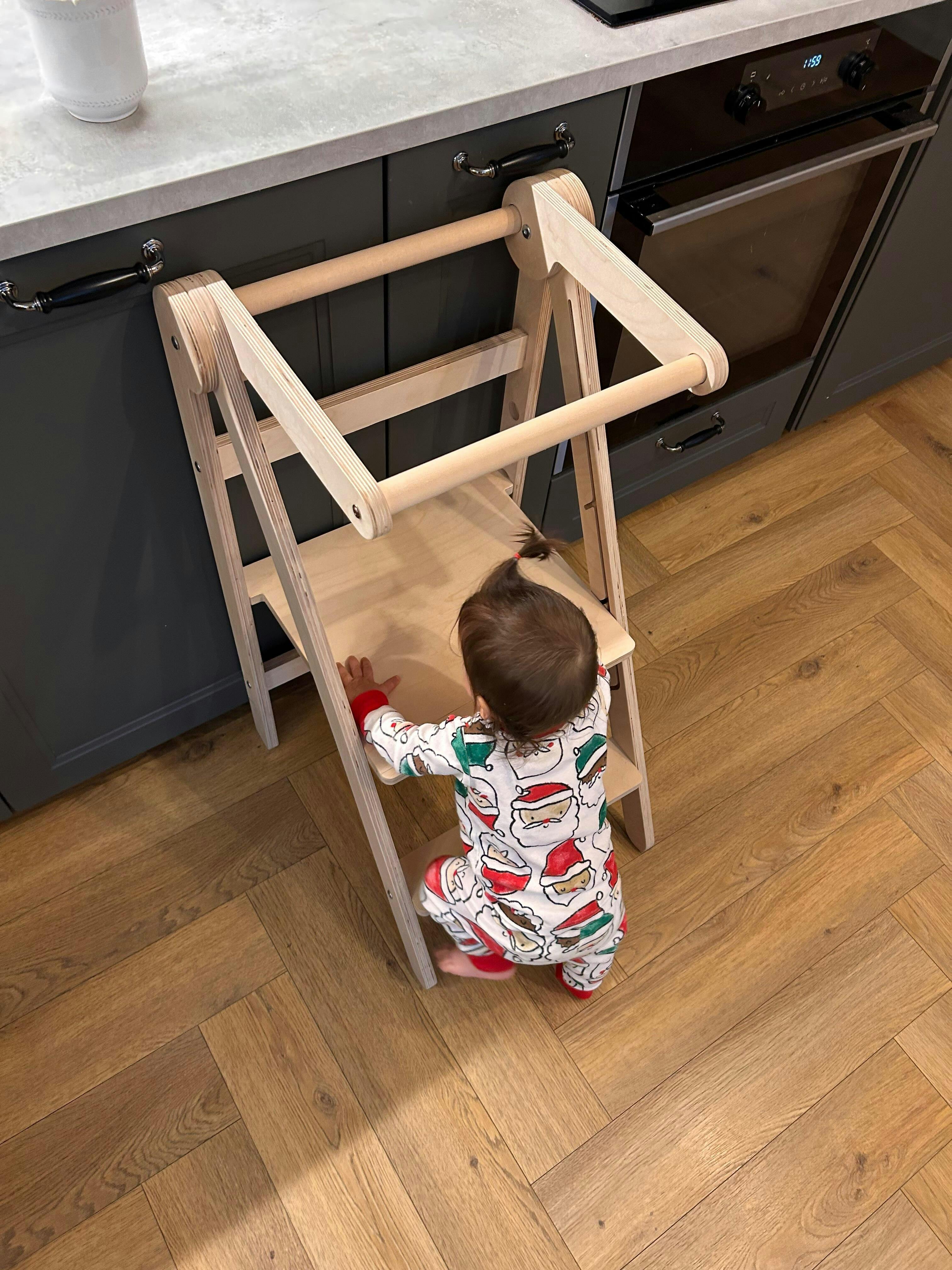 Our Learning Tower is designed to support your child’s development from toddler to preschooler, this versatile learning tower combines the practicality of a foldable frame with the added benefit of adjustable height. Whether your little one is helping out in the kitchen, brushing their teeth, or exploring new routines, this versatile tower makes everyday tasks safe, fun, and hands-on.